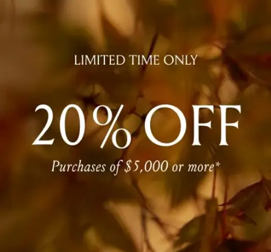Stop by and get 20% off purchases of $5,000 or more in store for a limited time.